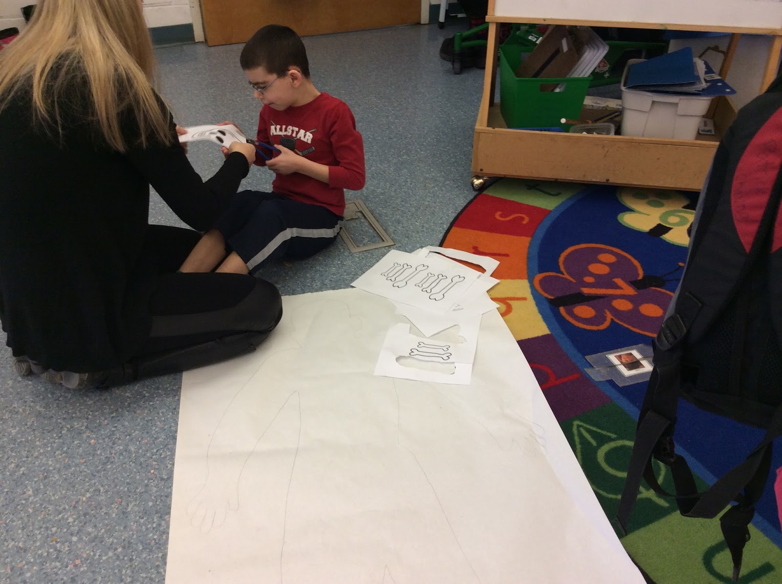 pictures of our students creating their own skeletons, which was a ton of fun!